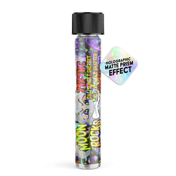 Customise with your logo, text or symbols. Child-resistant black screw-caps. Holographic labels help your pre-roll product stand out and give it a premium look and feel.